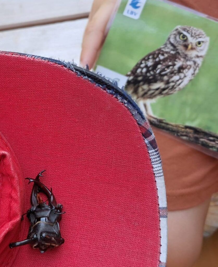 Sie lernten viel beim Spielen in der Natur. Sie sahen Wassertiere, Vögel am Himmel, Libellen und vieles mehr. Eine Gruppe war am See und hat dort mit Keschern Tiere gefunden und genau angeschaut. Es gab auch tolle Spiele. Eine Gruppe hat sogar einen Hirschkäfer gefunden! Diesen gab es einmal lebend und einmal in Teilen – er war wohl das Opfer eines Steinkauzes gewesen.