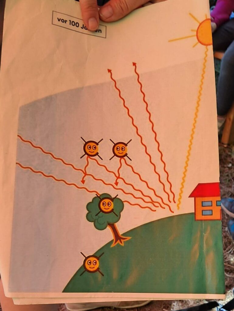 Dort haben die Kinder viel über die Natur gelernt. Es ging um unser Klima, das Thema Wasser und den See, die Streuobstwiese und die Hecke. Obwohl es warm war, waren alle Kinder mit Begeisterung dabei!