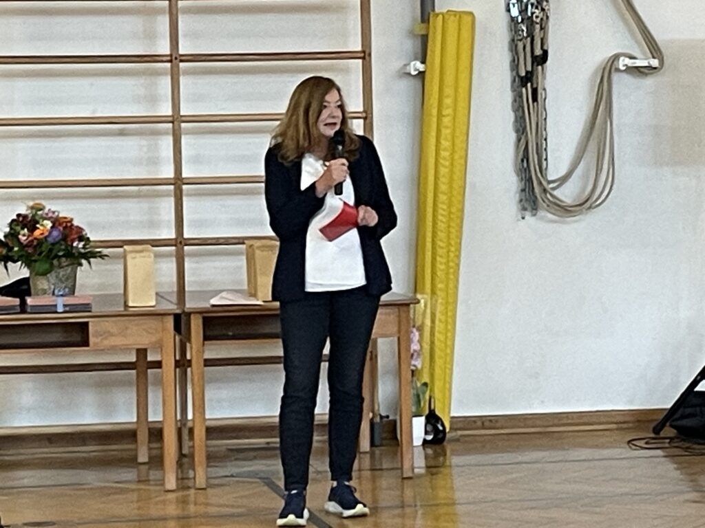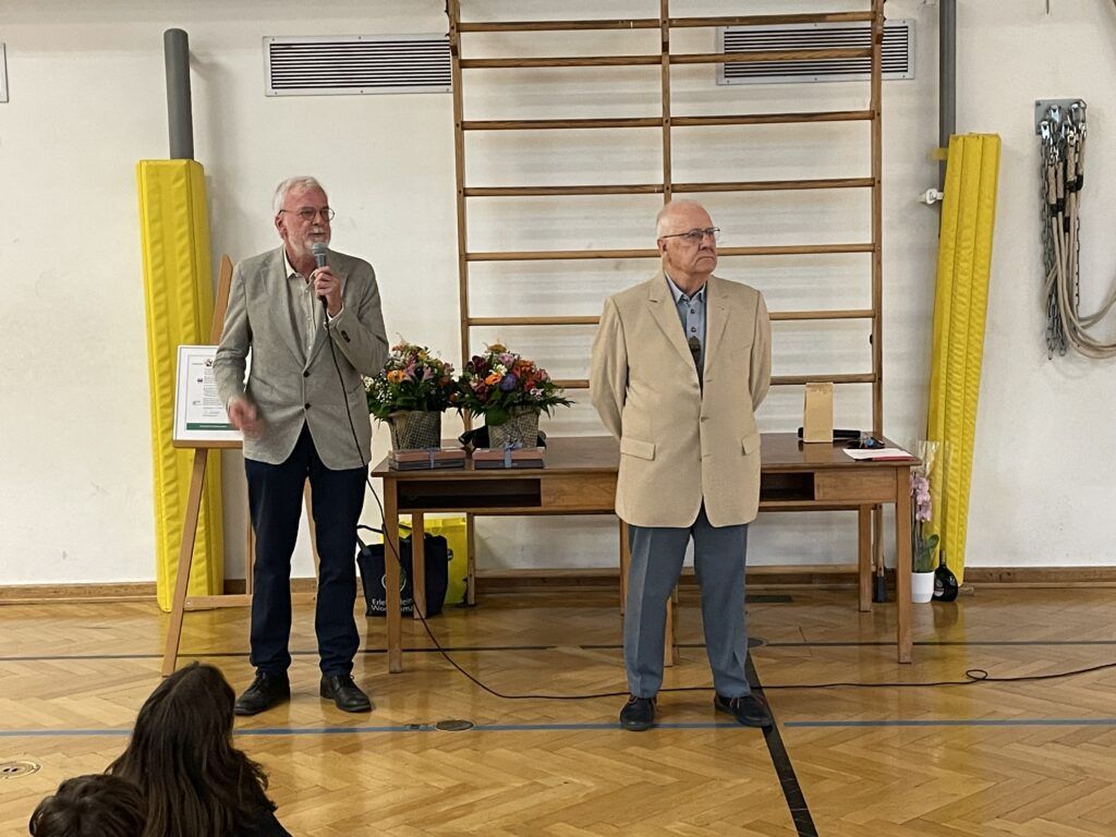 Als Höhepunkt der Veranstaltung folgte die Überreichung des Wüstenbecker-Preises an zwei besonders engagierte Schülerinnen. Die erste Rede zur Preisverleihung kam von Frau Euler, die betonte, dass man sich anstrengen muss, ehrlich sein muss und sich um andere kümmern muss. Dies sei von der ausgezeichneten Schülerin in einem hohen Maße geleistet worden. Danach verglich Herr Wüstenbecker in seiner Laudatio für die zweite ausgezeichnete Schülerin seine Stiftung mit einer Schatzkiste, wo Menschen etwas hineingeben, um andere zu unterstützen. Er hob hervor, wie wichtig Fleiß und Zuverlässigkeit sind, was schließlich zu hervorragenden Zensuren führen kann.